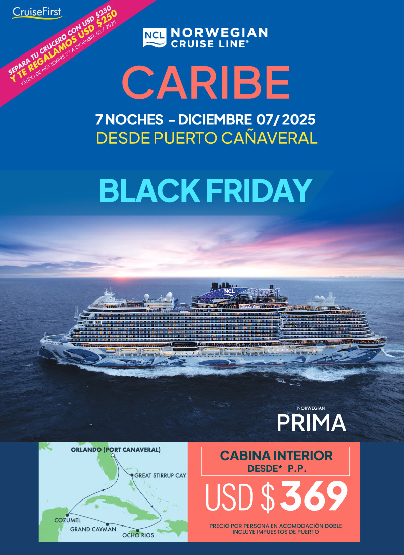 Vive una experiencia inolvidable por el Caribe navegando 7 noches a bordo del Norwegian Prima, uno de los barcos más modernos de Norwegian Cruise Line.