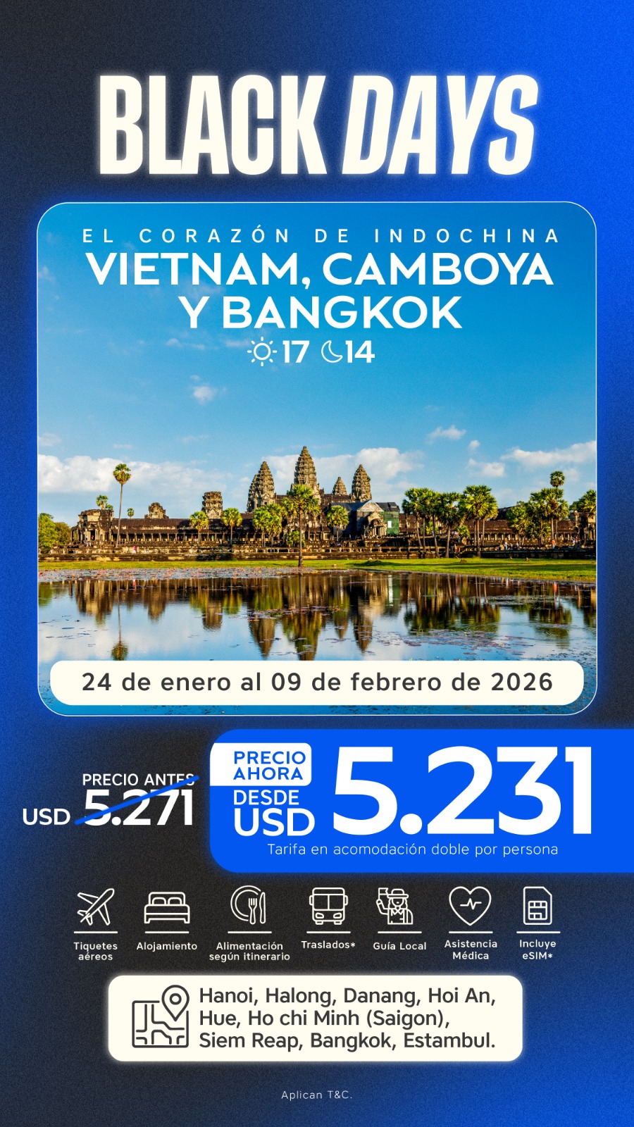 Incluye Bahía de Halong y templos de Angkor